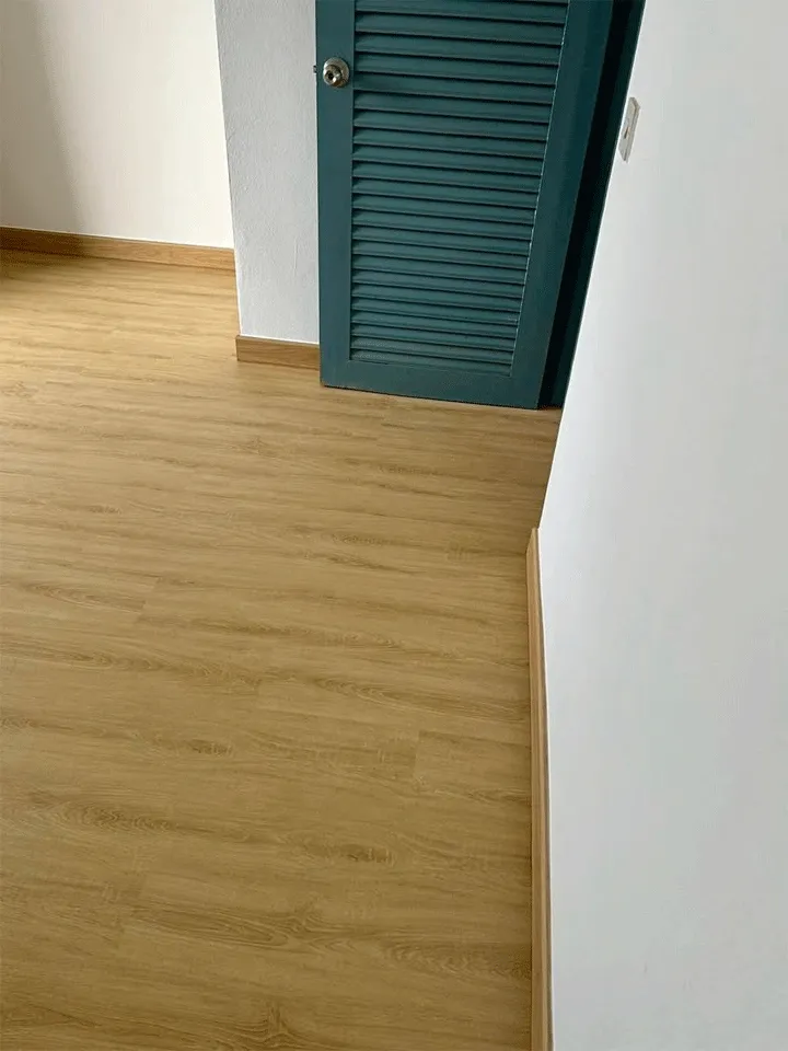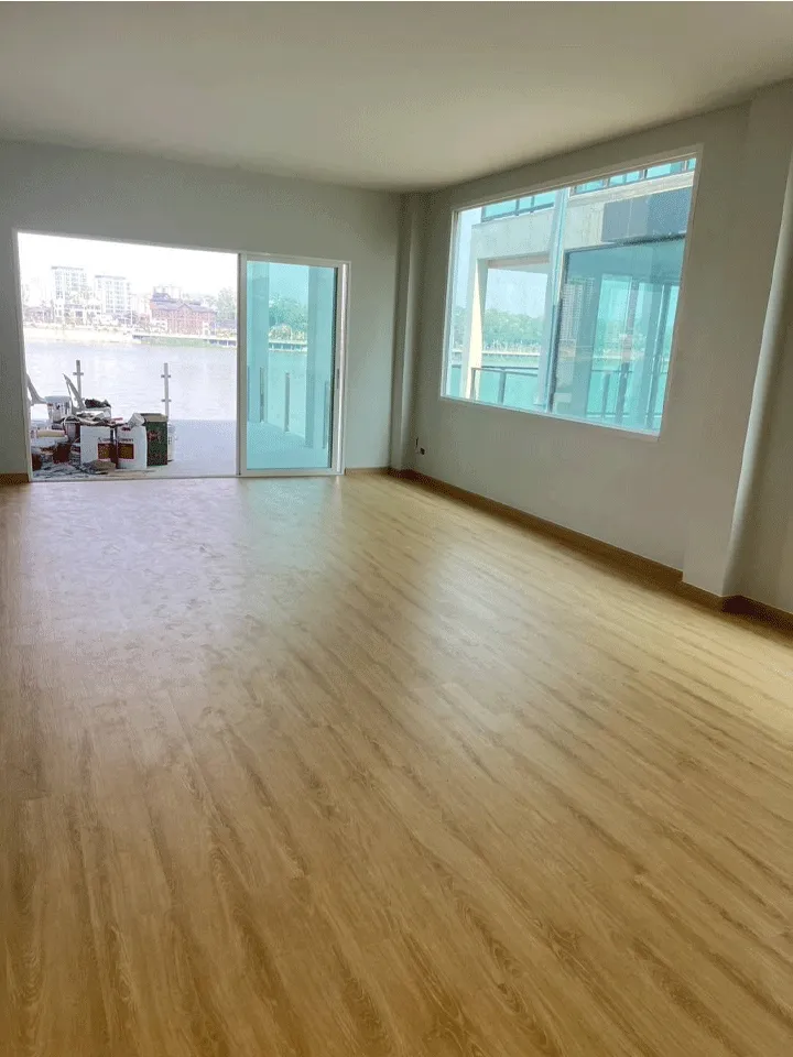 ไม้พื้น SPC ลายตรง สีธรรมชาติ เรียบหรู เข้ากับบรรยากาศโรงแรมสไตล์อบอุ่นริมแม่น้ำ